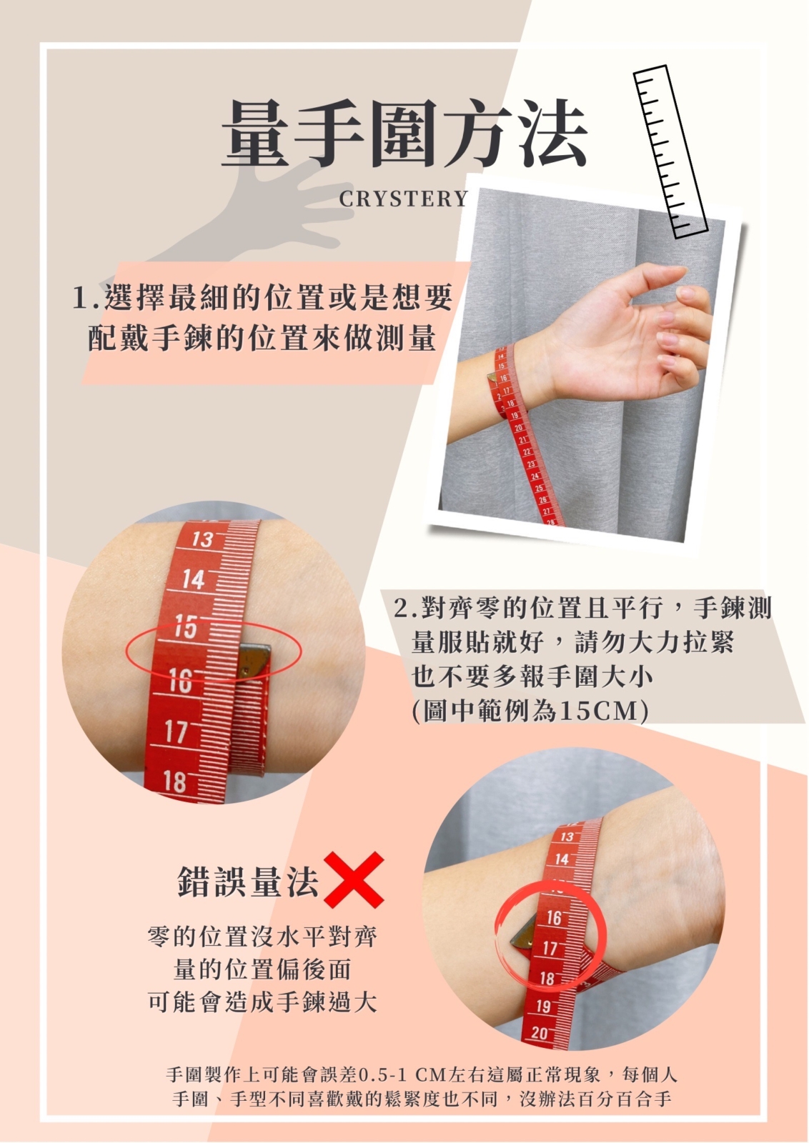 - 手圍若量測有誤須自行負擔來回運費寄回調整