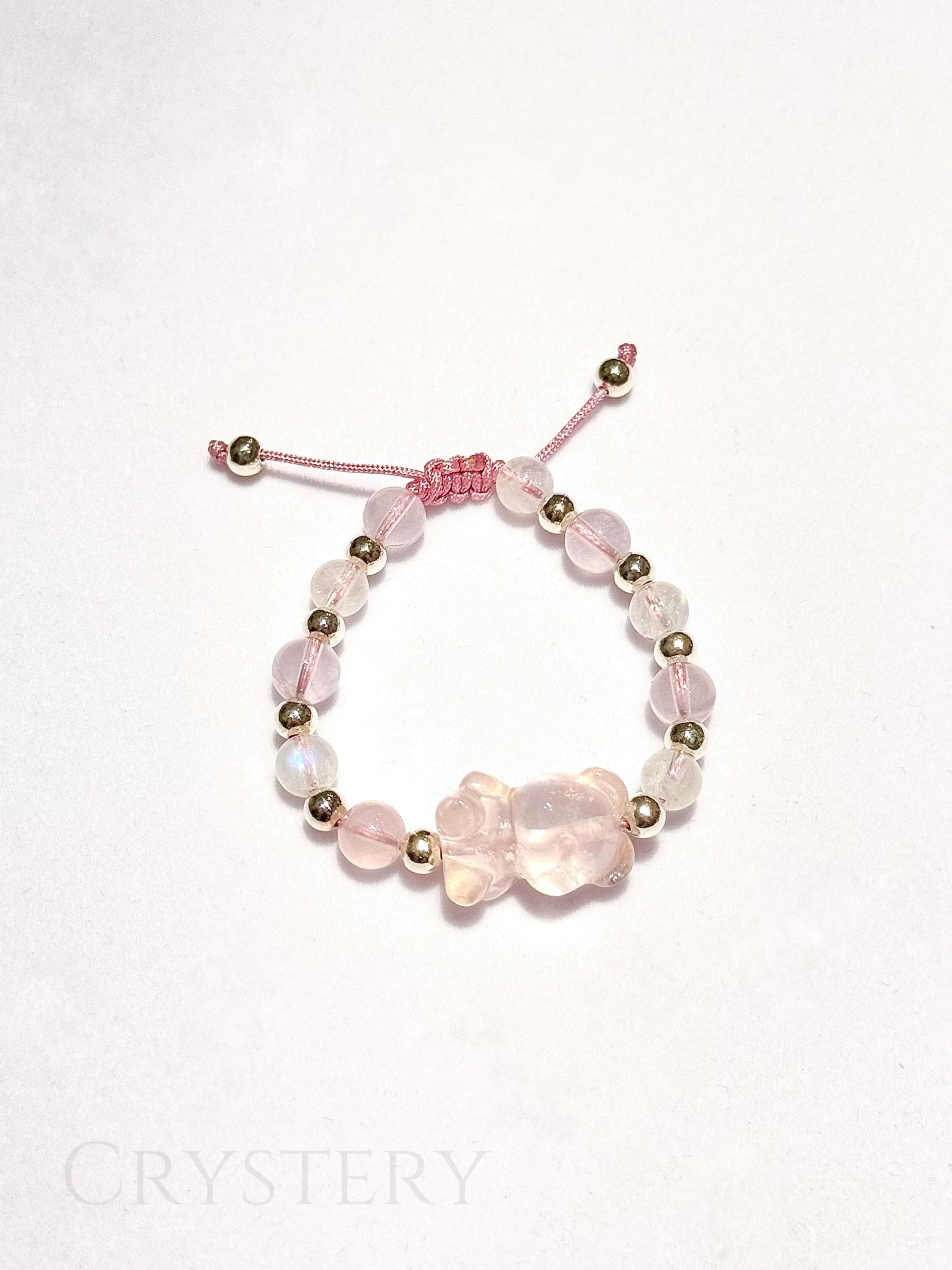 - 粉晶熊尺寸長約17mm ±0.5mm|粉晶、月光石約6mm ±0.5mm