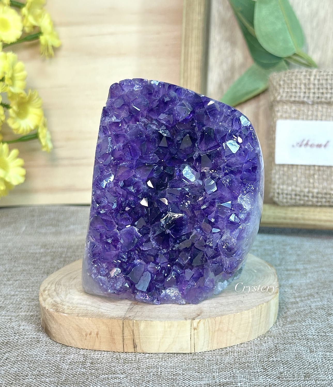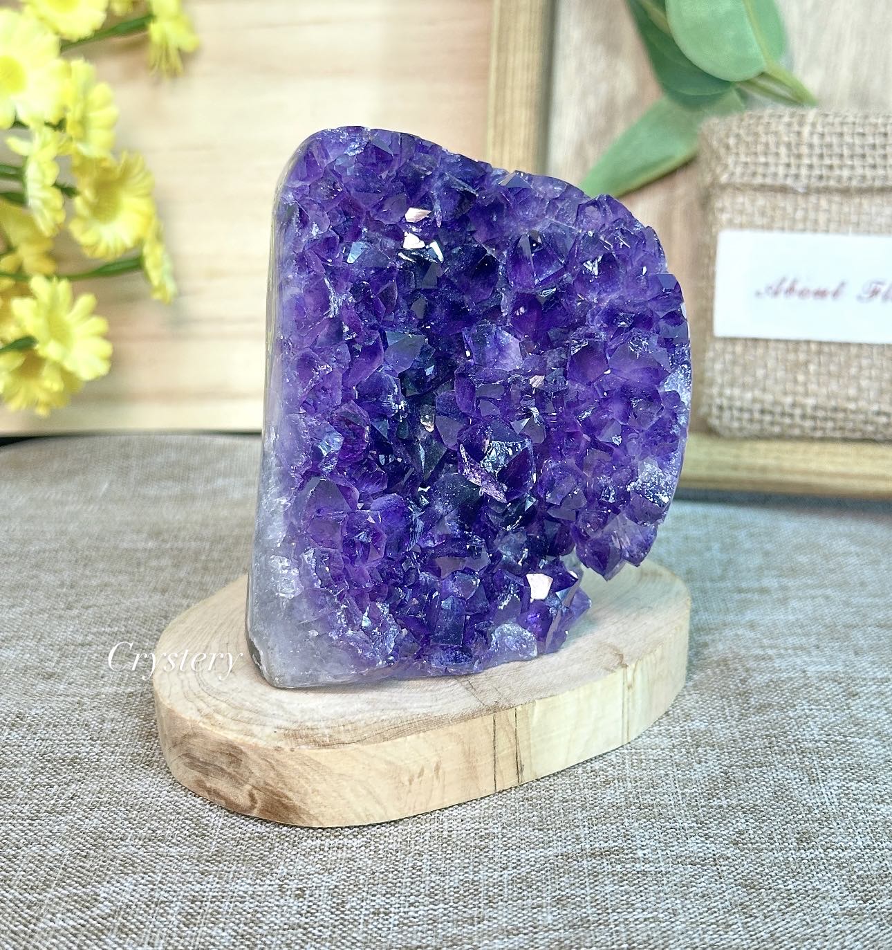 紫晶原礦, 紫晶原礦加木片底座